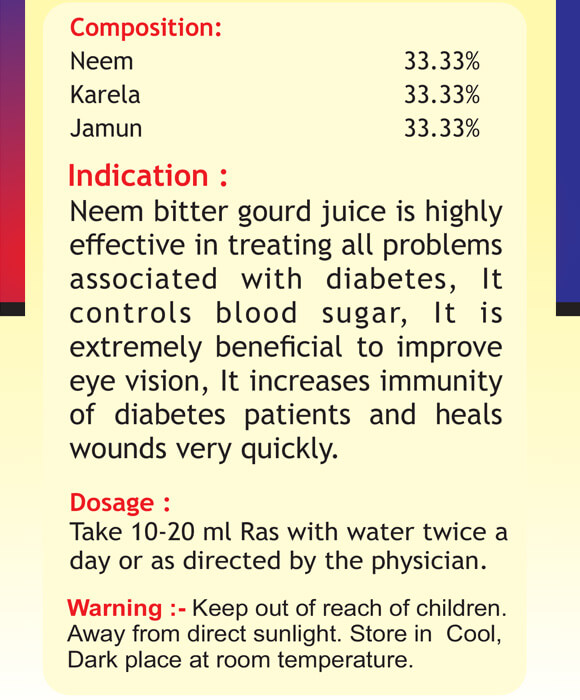 - 100% Pure Herbal and Sugar free Diabetic control Neem Karela Jamun Ras. Beneficial for Sugar patients.